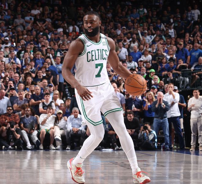 和乔治的高开低走截然相反,前两节表现平平的杰伦布朗,下半场率领凯尔特人打出了非常流畅的整体进攻,靠着19次出手命中9球的效率,杰伦布朗贡献了23分、6个篮板、10次助攻和2次抢断的全面个人数据。