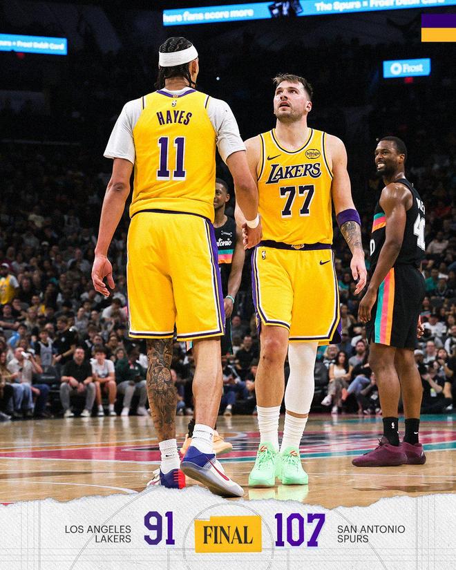 东契奇38+10+10湖人不敌马刺文班复出16+14