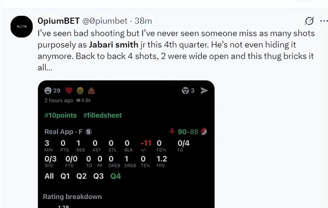 休媒:小贾第四节的表现无论是进攻还是防守都是火箭输球的关键,他一直是球队最薄弱的一环,在申京受伤后他的表现更是糟糕透顶。