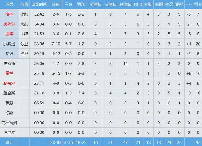 哈登投篮20中4,直接把篮筐砸歪......然而快船还是赢了东部最强球队活塞,客场98-92带走胜利。快船数据如下:活塞数据如下:本场比赛由于康宁汉姆和杜伦全部休战,快船击败缺少两大核