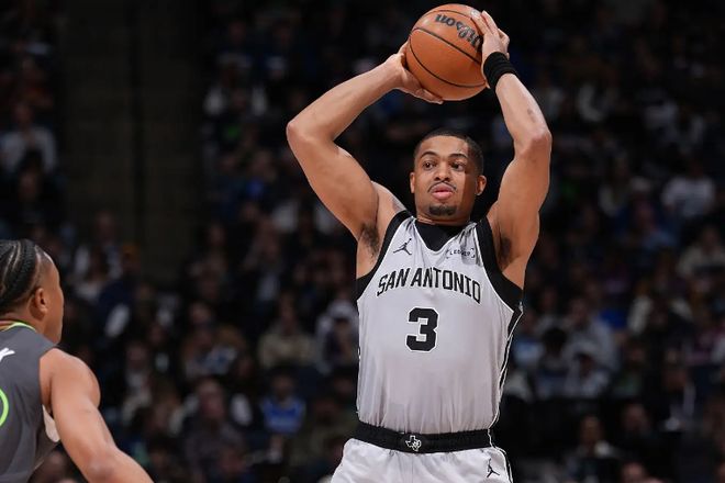 本场比赛中,马刺虽然输掉了比赛,但是球队的替补侧翼大将凯尔登-约翰逊(Keldon Johnson)也算是尽力了。约翰逊全场出场25分59秒,投篮8中5,三分线外4中3,罚球2中2,得到了15分2篮板的数据,还有1次失误和3次犯规,正负值为-4。约翰逊的出场时间和出手次数其实都并不多,但是他还是抓住了有限的机会得到了不少的分数,在进攻端为球队提供了大量的帮助和支持,也展现出了自己全面的得分能力。在其他球员手感不佳的情况下,他也是能够扛起球队的进攻大旗并且发挥出自己的特点。除此之外,约翰逊在防守端也算是中规中矩,也没有什么太大的问题。很显然,要不是有约翰逊,马刺只会输得更惨,而如果约翰逊能够得到更多的出场时间和更多的信任,如果他能够在关键时刻留在场上,说不定比赛的局面也会发生一些变化。