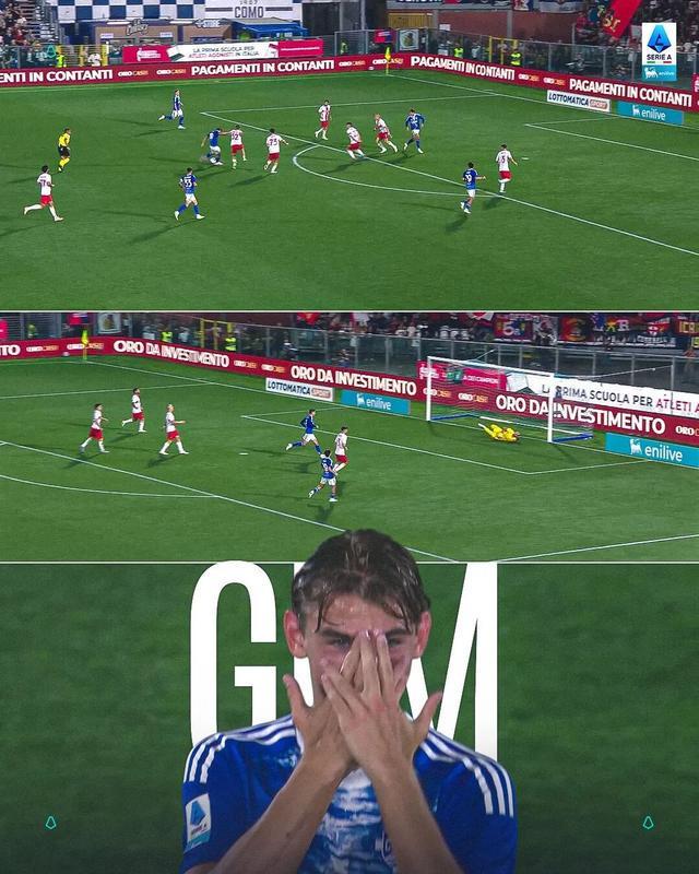 回到本场比赛,尼科·帕斯在第13分钟的一记世界波曾让法布雷加斯的球队看到胜利曙光。当时,莫拉塔送出纵深传球,帕斯转身抹过两名防守球员,远程重炮直挂死角,令对方门将措手不及。 这是他在意甲的第二记“神仙球”,此前对拉齐奥也曾轰出佳作。