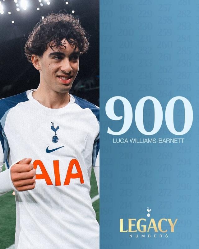 直播吧9月25日宣 联赛杯第3轮,热刺3-0击败唐卡斯特流浪。比赛第87分钟,热刺16岁小将卢卡-威廉姆斯-巴内特上演一线队首秀。据官方数据,巴内特成为了第900位代表热刺出场的球员