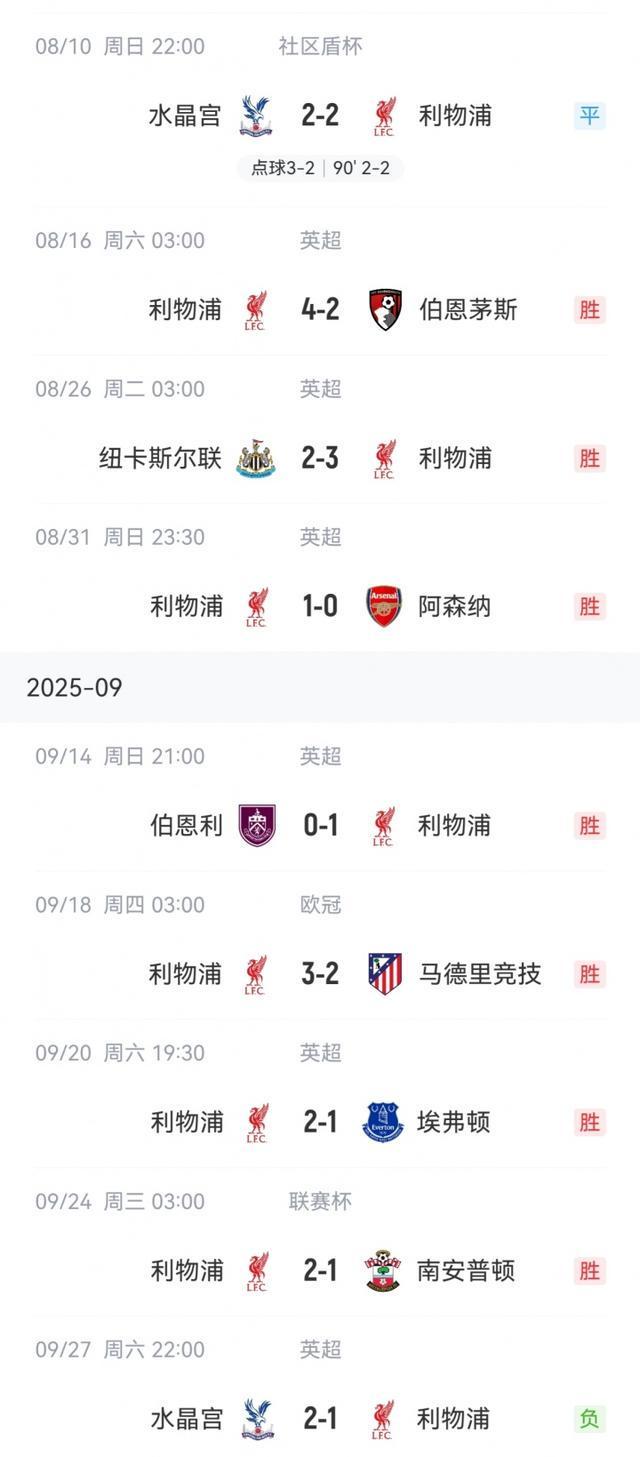 金身告破!利物浦联赛全胜终结,本赛季仅有2场输球全是输水晶宫