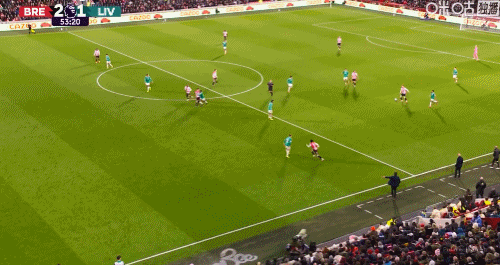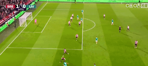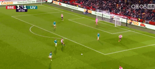 第5分钟,手榴弹战术,瓦塔拉半凌空倒钩破门,布伦特福德1-0利物浦