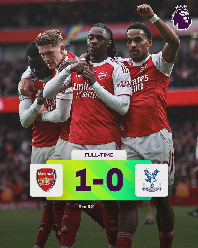 英超第9轮,阿森纳主场对阵水晶宫。上半场,埃泽凌空破门弑杀旧主,打进全场比赛唯一进球,阿森纳主场1-0战胜水晶宫,各项赛事7连胜,继续领跑英超。