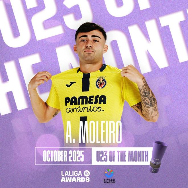 雷速体育10月30日宣 西甲联赛官方宣布,22岁的比利亚雷亚尔前锋莫里罗当选10月份联赛最佳U23球员。