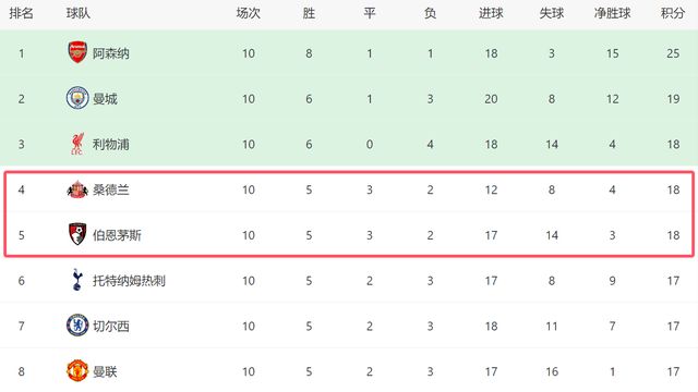 随着桑德兰的爆发,英超争四也更加混乱了。事实上,除了桑德兰之外,伯恩茅斯也拿到了18分,他们与桑德兰这2大黑马,已经搅乱了争四的大局。如今热刺、切尔西和曼联等强队,都被挤出前四,利物浦和曼城一不小心,也可能被桑德兰和伯恩茅斯反超。