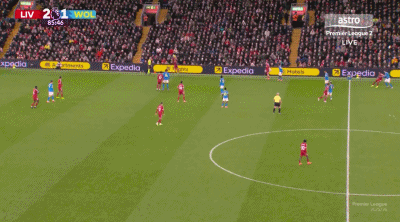 本场狼队的运动战进攻,打长传球利物浦并没吃亏,恰恰是在下三路地面球,特别是在狼队突破了利物浦前场逼抢的第一线之后,利物浦中路,后腰位置的防守留给对方太多空间。